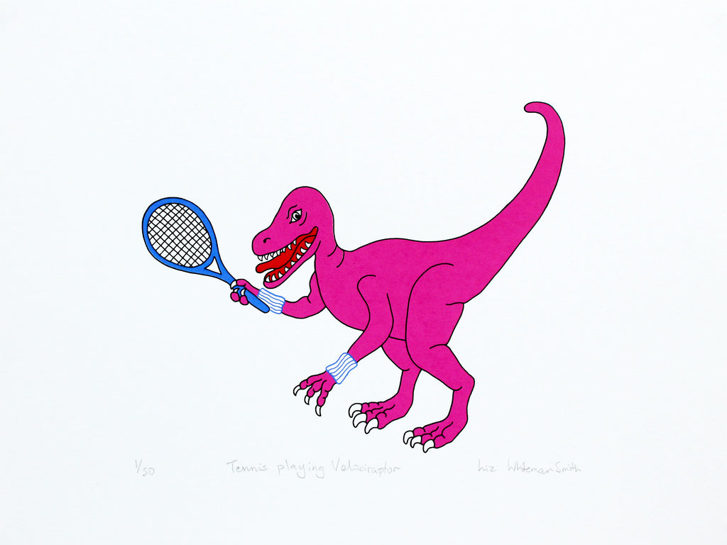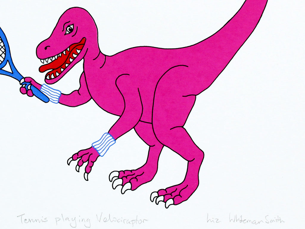Pink dinosaur scoring match point. Everyone loves dinosaurs, sadly they became extinct but what would they be doing if they were around today. I have given each of these dinosaurs something to play with - which one is your favourite?